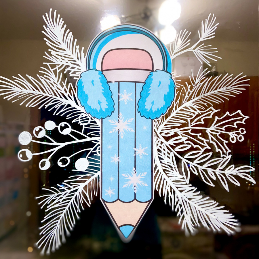Этот декор выглядит профессионально, словно художник в кофейне оформил окно. Для того, чтобы Вы смогли украсить окно за 15 мин, я работала неделю. И у меня получилось! Никакой возни, очень быстро, просто и эффектный результат. Ну, и милейшие новогодние карандаши - специально для Вашего класса.