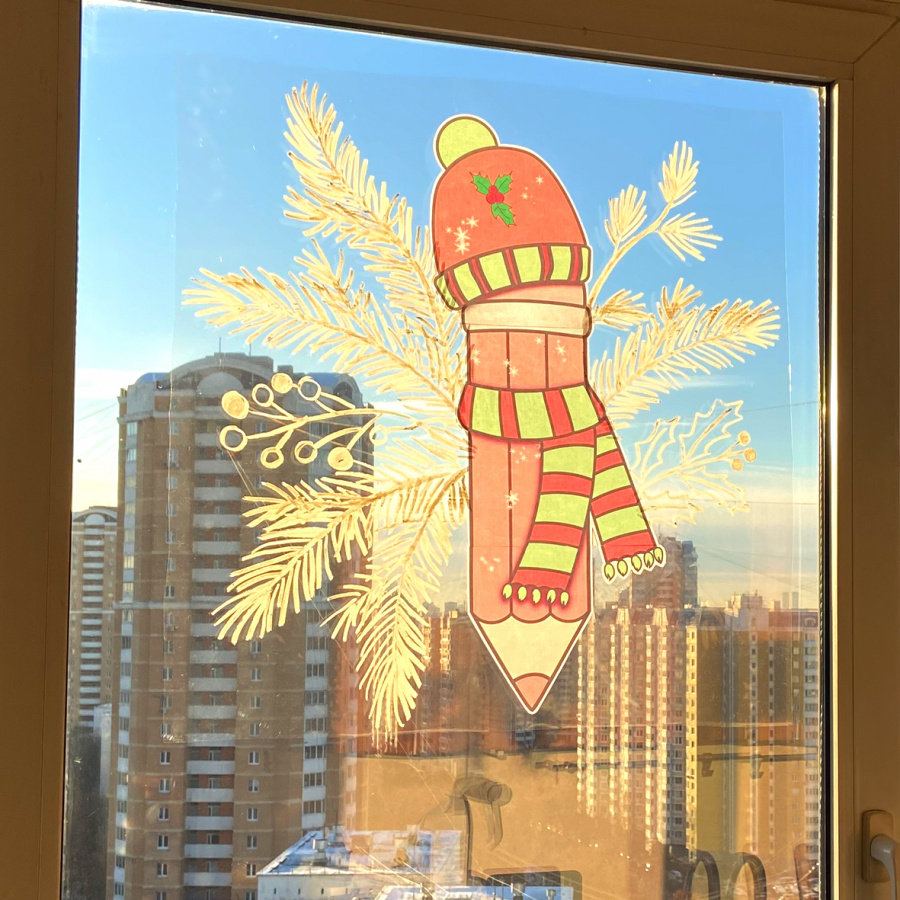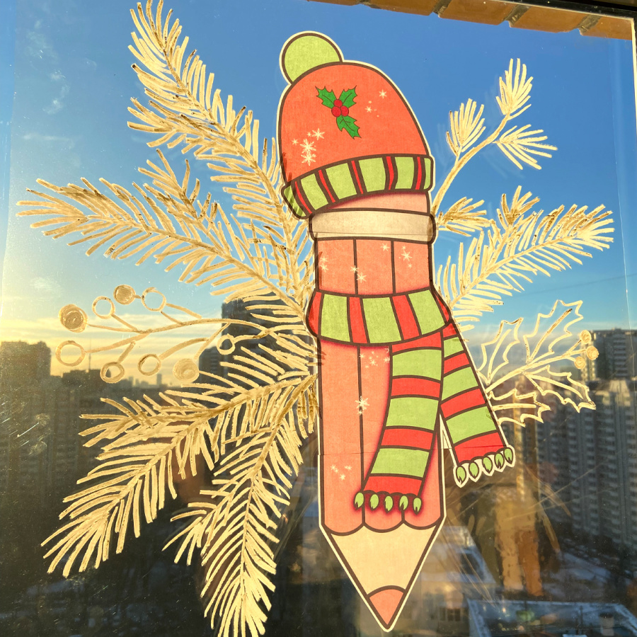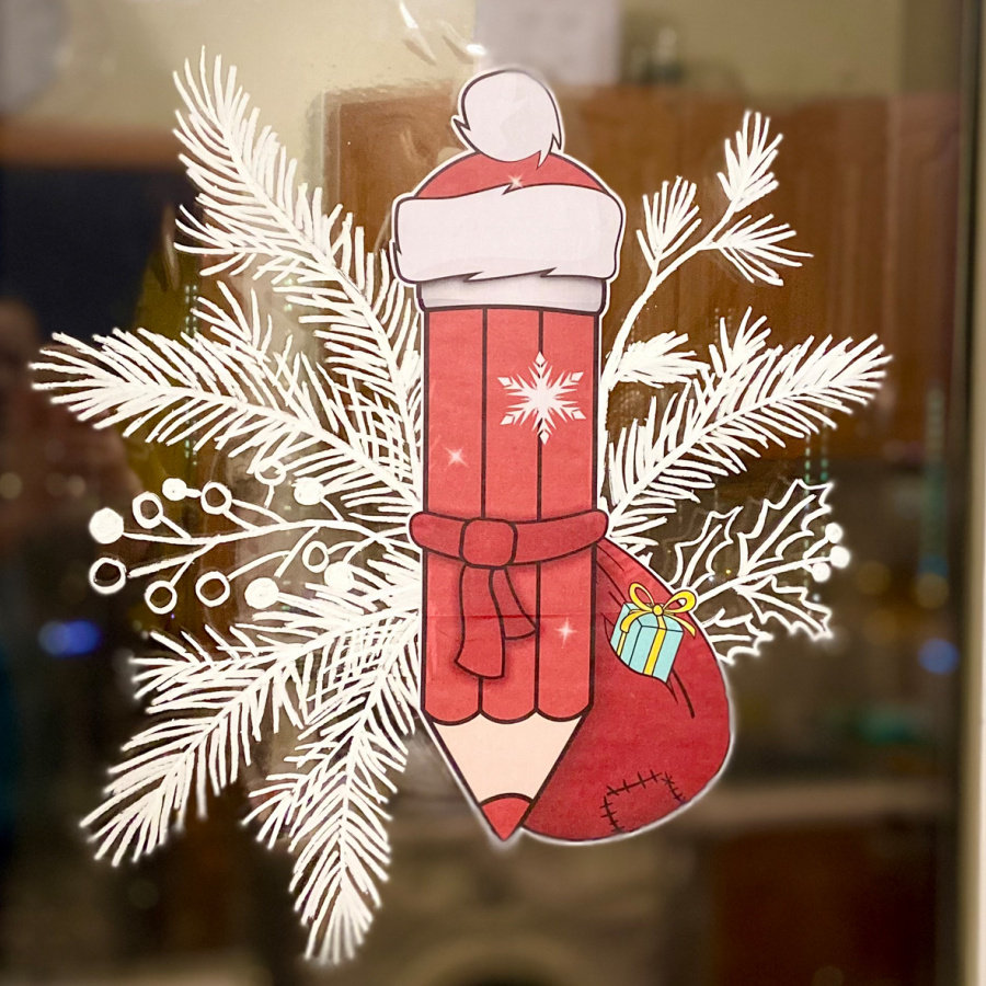 Этот декор выглядит профессионально, словно художник в кофейне оформил окно. Для того, чтобы Вы смогли украсить окно за 15 мин, я работала неделю. И у меня получилось! Никакой возни, очень быстро, просто и эффектный результат. Ну, и милейшие новогодние карандаши - специально для Вашего класса.