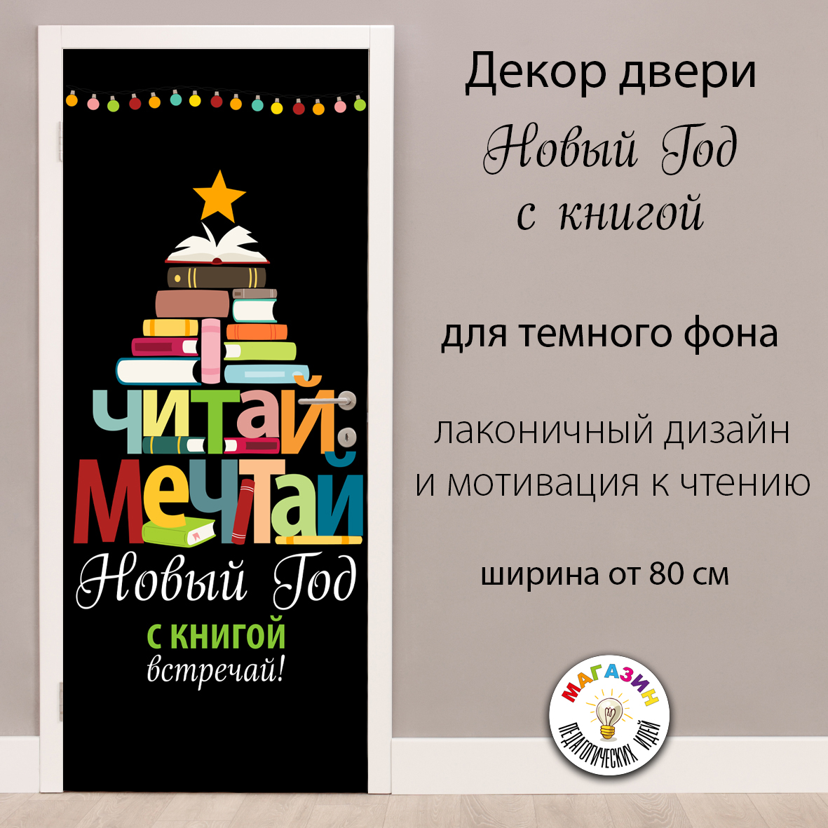 Декор двери "Новый Год с книгой" для мотивации к чтению и позиционирования его, как части праздника 350 руб |