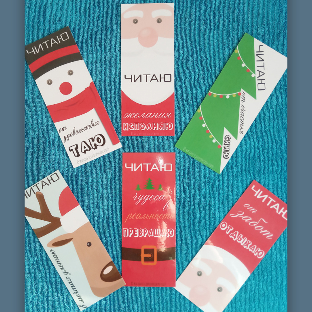6 вариантов закладок для мотивации к чтению в новогодней тематике 150 руб |