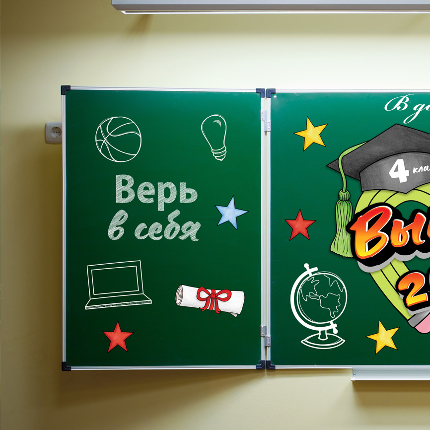 Яркое и стильное оформление для доски к выпускному в 4, 9 и 11 классах. Мощный заряд позитива в важный день для класса и учителя ❤️