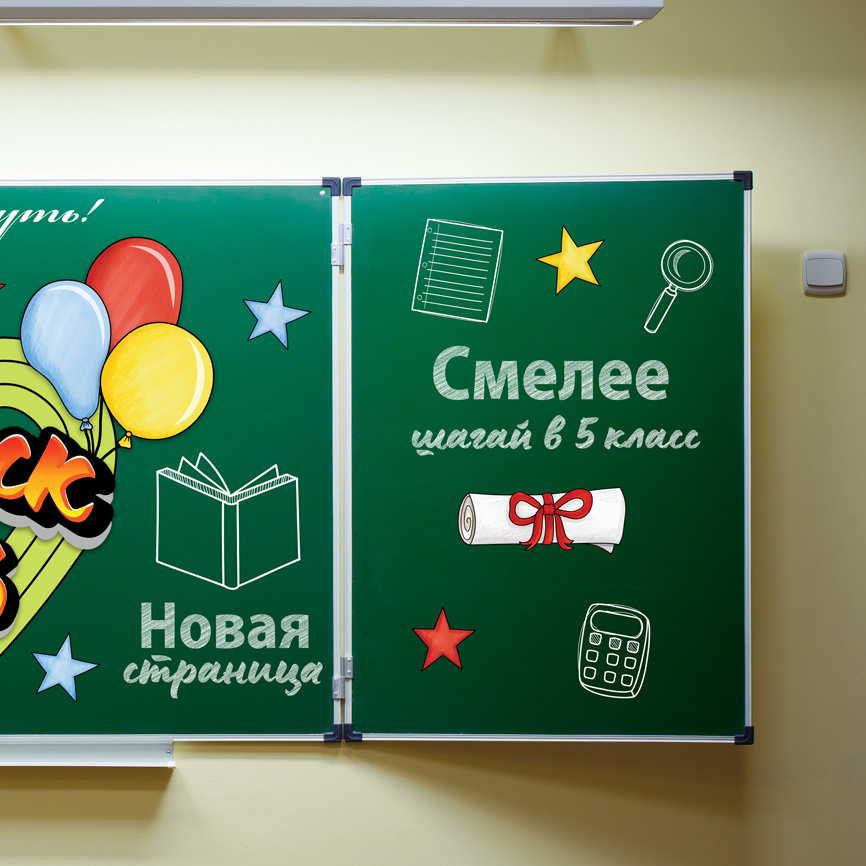 - надписи "Новая страница", "Верь в себя", "Смело шагай в 5 класс", "Все дороги открыты" на темно-зеленой подложке для цветной печати