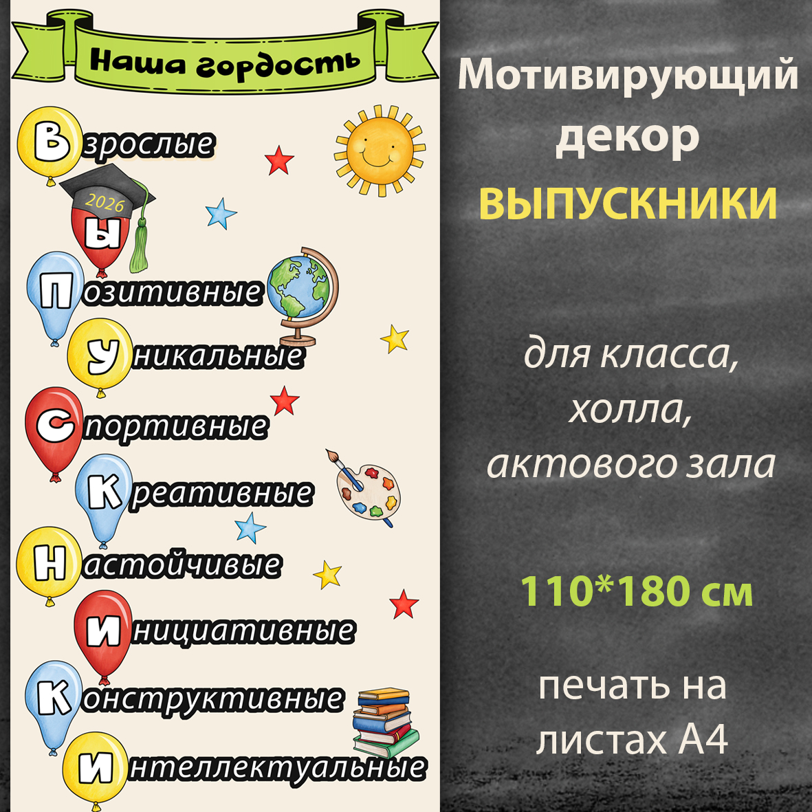 Дополните другими материалами для Выпускного и Последнего звонка в том же стиле - кликните на обложку, чтобы перейти на страницу товара: