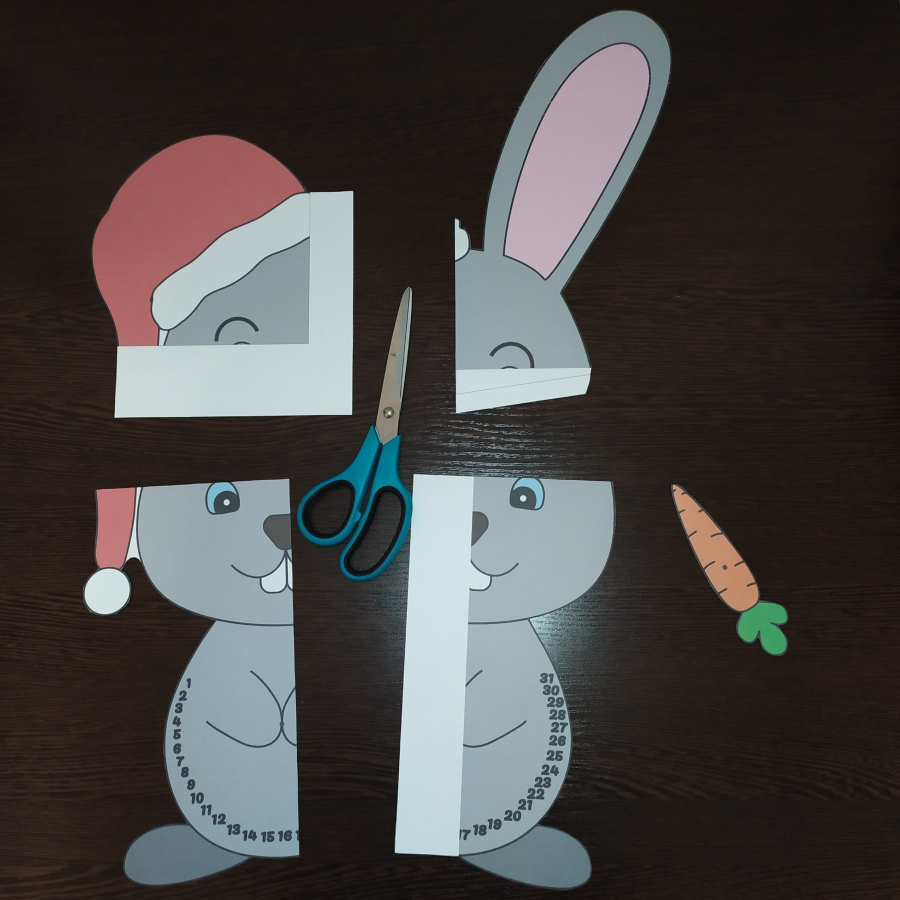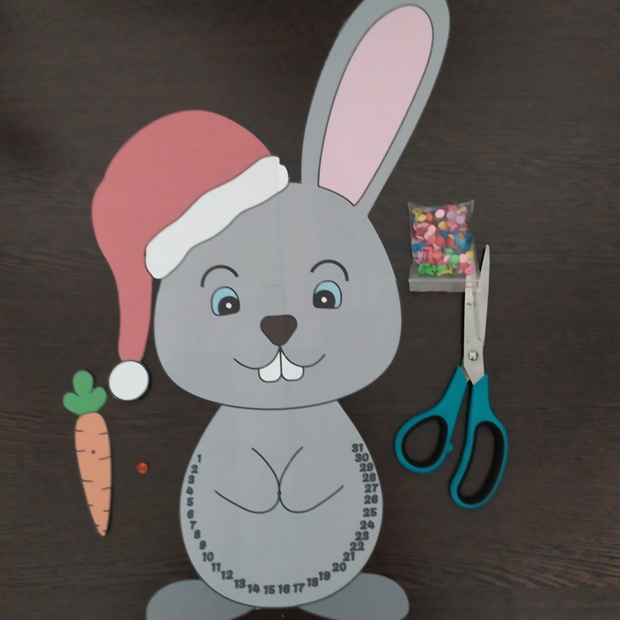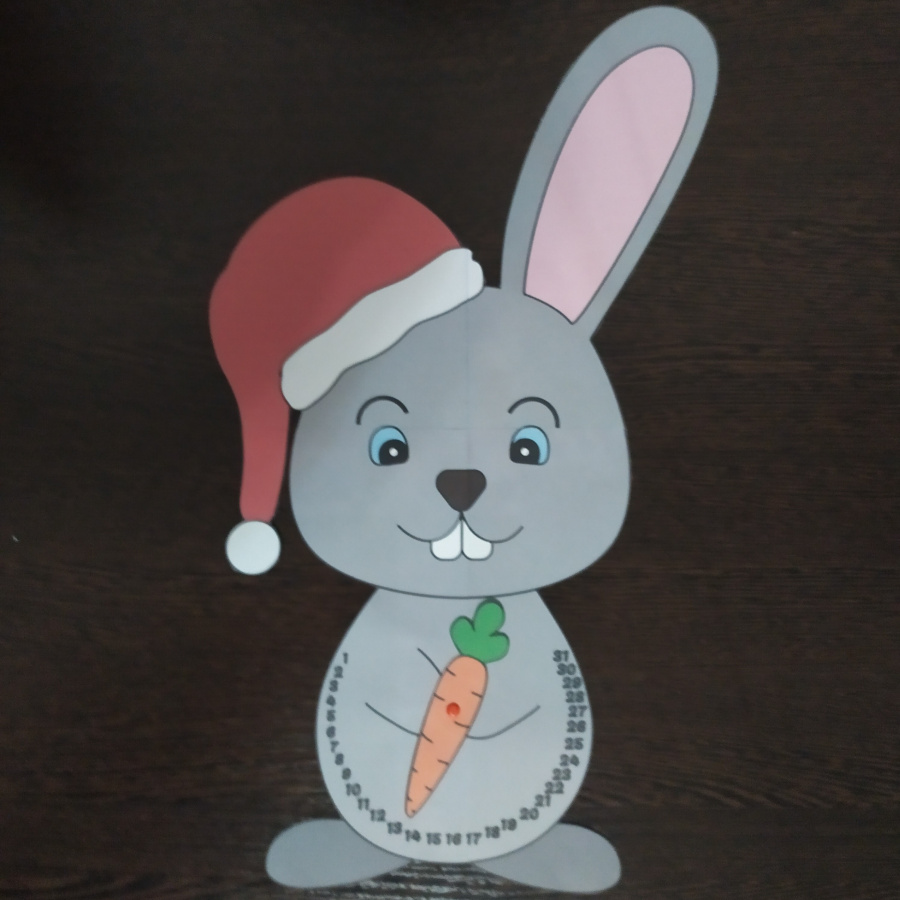 Дни до Нового года, и даже до конца четверти, считают и в младших, и в старших классах. Милый заяц с часовой стрелкой в виде морковки и циферблатом из чисел месяца поможет вести отсчет. А ещё обязательно поднимет настроение.