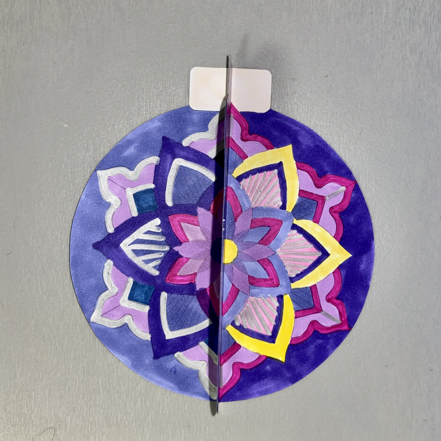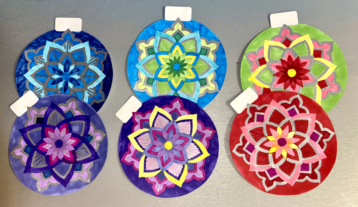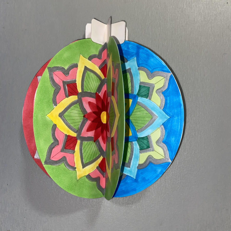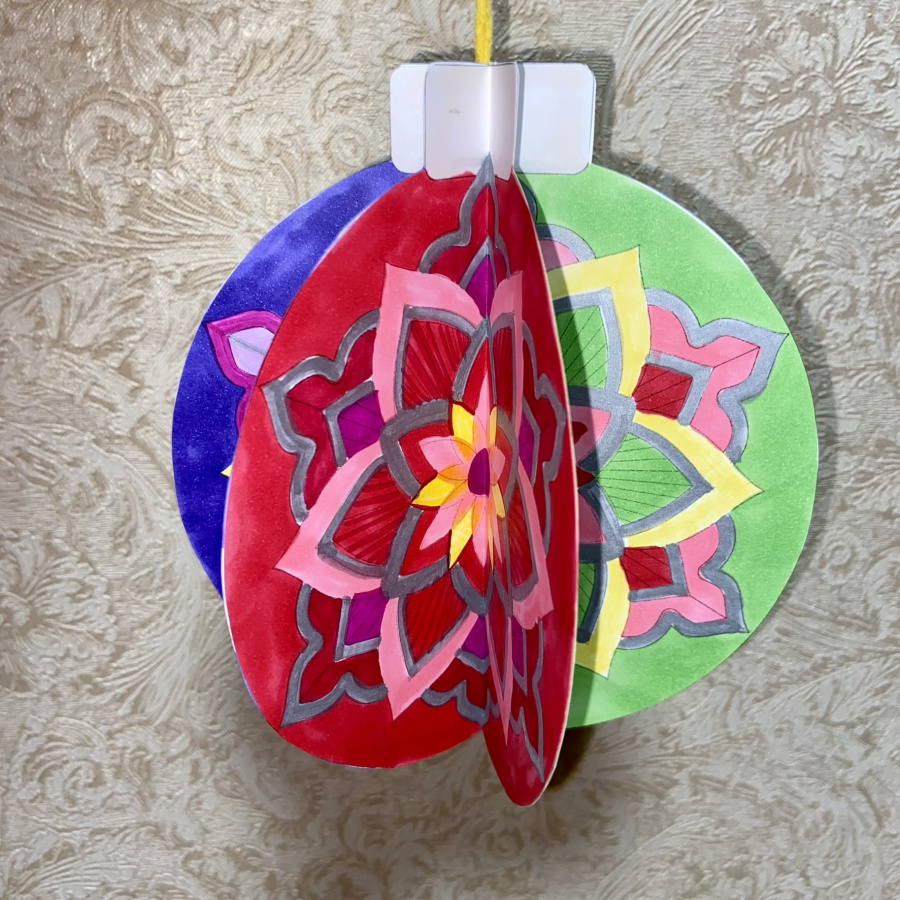 Эффектные украшения для класса и дома - объемные шары, склеенные из 6 сторон с одинаковым орнаментом. Наиболее эффектно выглядят шары, стороны которых раскрашены в одном стиле. Можно использовать краски с блескм, золотые и серебряные маркеры, объемные контуры, глиттер.