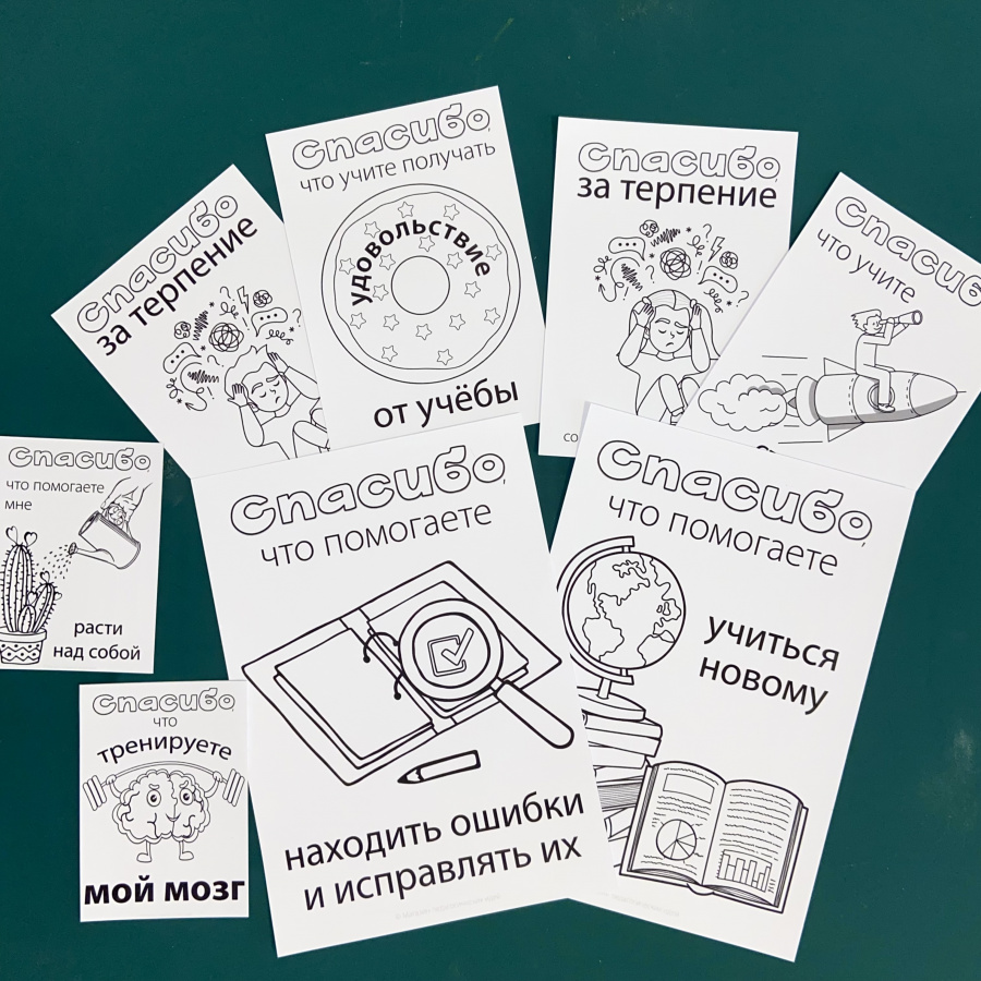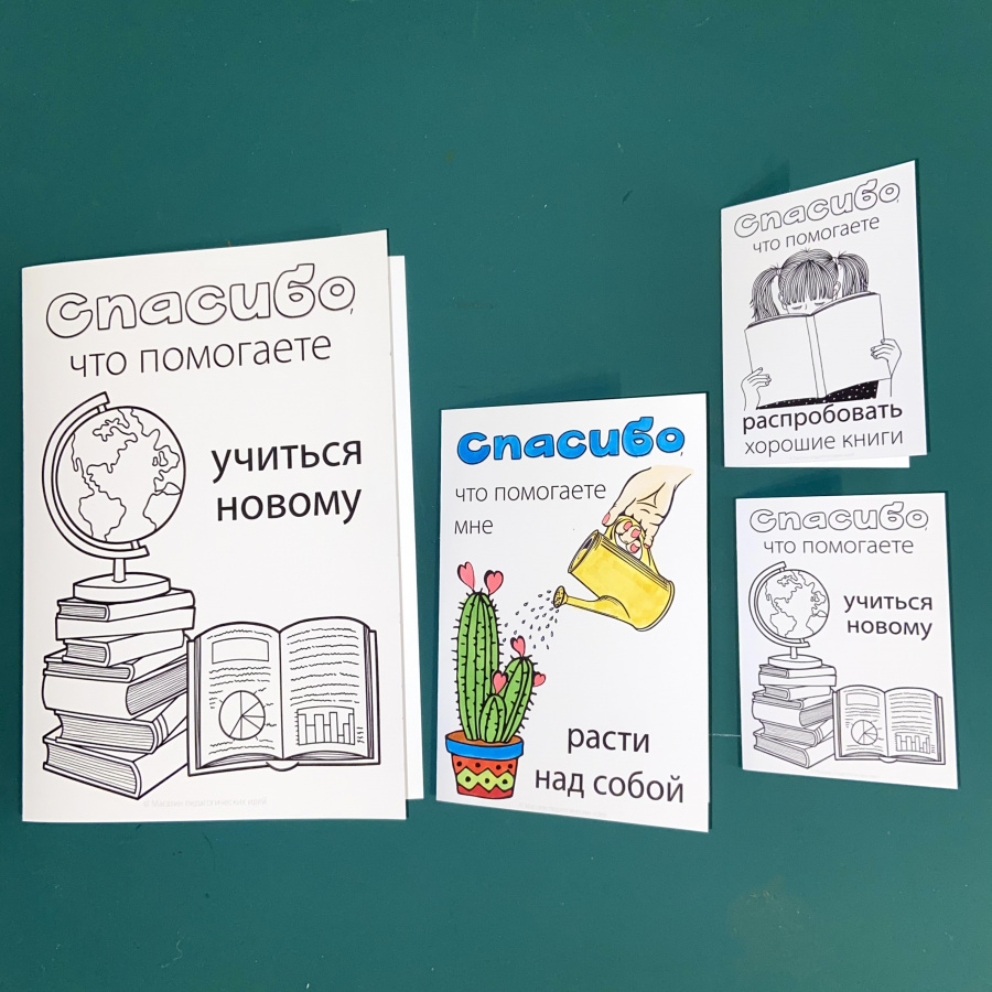Эти открытки как раз про это. Я постаралась сформулировать важные вещи, за которые стоит поблагодарить учителя - получилось 15 вариантов с индивидуальным дизайном. Картинки без мелких деталей, их легко раскрашивать.