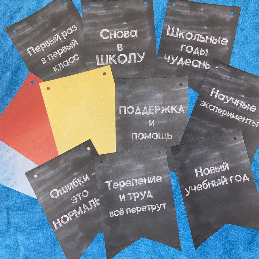 - Флажки для свободного творчества (ребята смогут на них нарисовать те символы учебного года, которые захотят ИЛИ можно распечатать эти флажки на цветной бумаге)