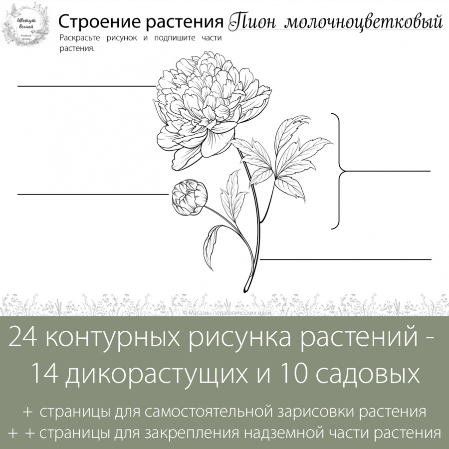 - страницы с контурными рисунками весеннецветущих травянистых растений (24 растения: 14 дикоросов и 10 садовых)