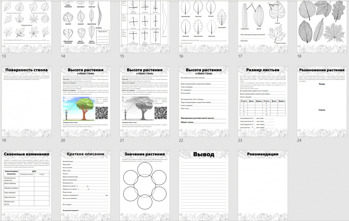 - пособие для учащихся (30 рабочих листов с инструкциями и контурными рисунками для проведения исследования, из которых впоследствии собирается папка или баннер для стендовой защиты)