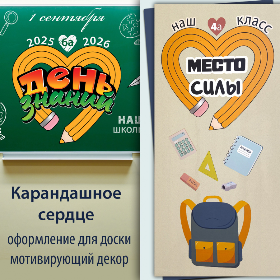 - Оформление для доски к Дню знаний "Карандашное сердце"