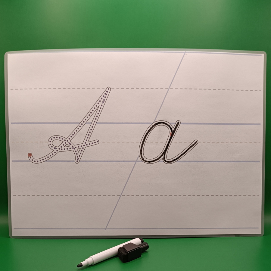 Но в этом случае рекомендую использовать отдельные карточки для учеников (найти их можно здесь: https://ideateach.org/products/@teacher_energizer-c129034278) . Они меньшего размера, поэтому детям будет проще обводить букву, сидя за партой.