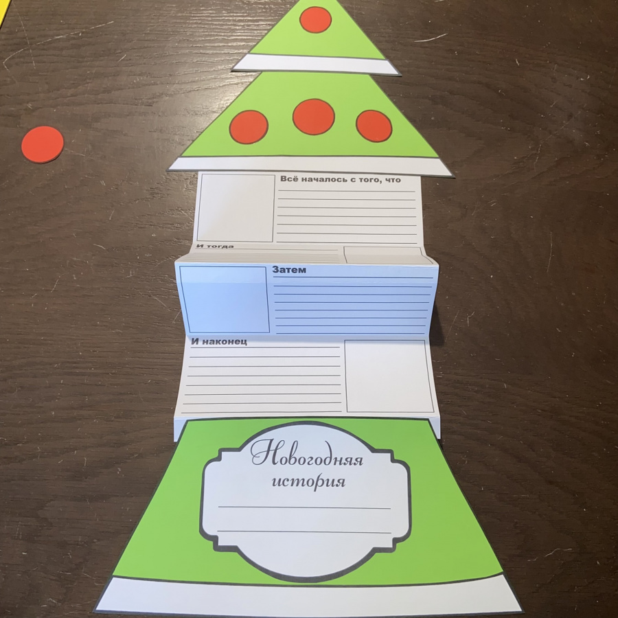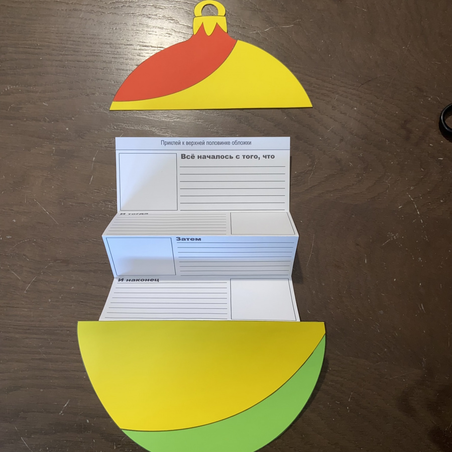 Дети любят создавать собственные истории и оформлять их в виде книжек. Книжка-гармошка с обложкой в виде новогодней ёлки, ёлочного шара или подарка – отличный способ мотивировать своих учеников написать собственную историю.