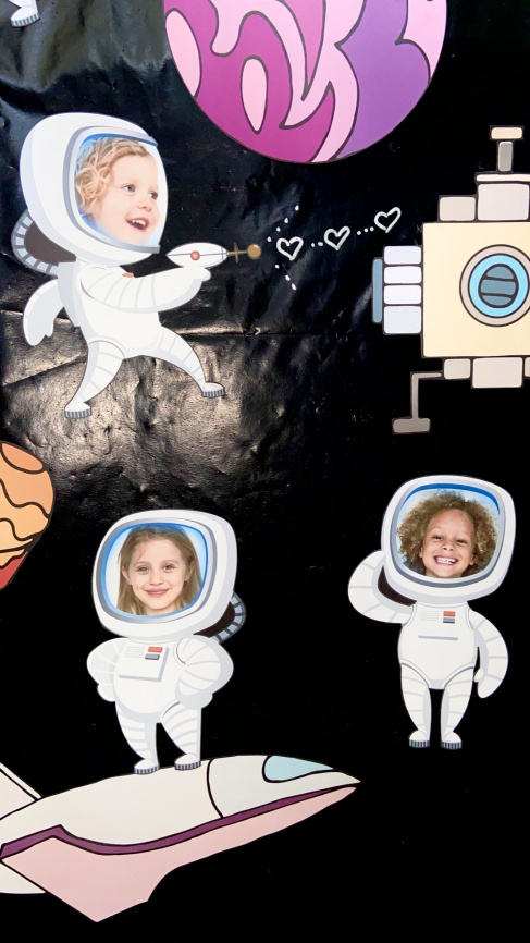 Особую прелесть этому декору придают космонавты с фотографиями учеников класса в шлеме скафандра. Фото Вы вставите в шаблон в три клика! Так быстро, и так просто. Инструкция прилагается.