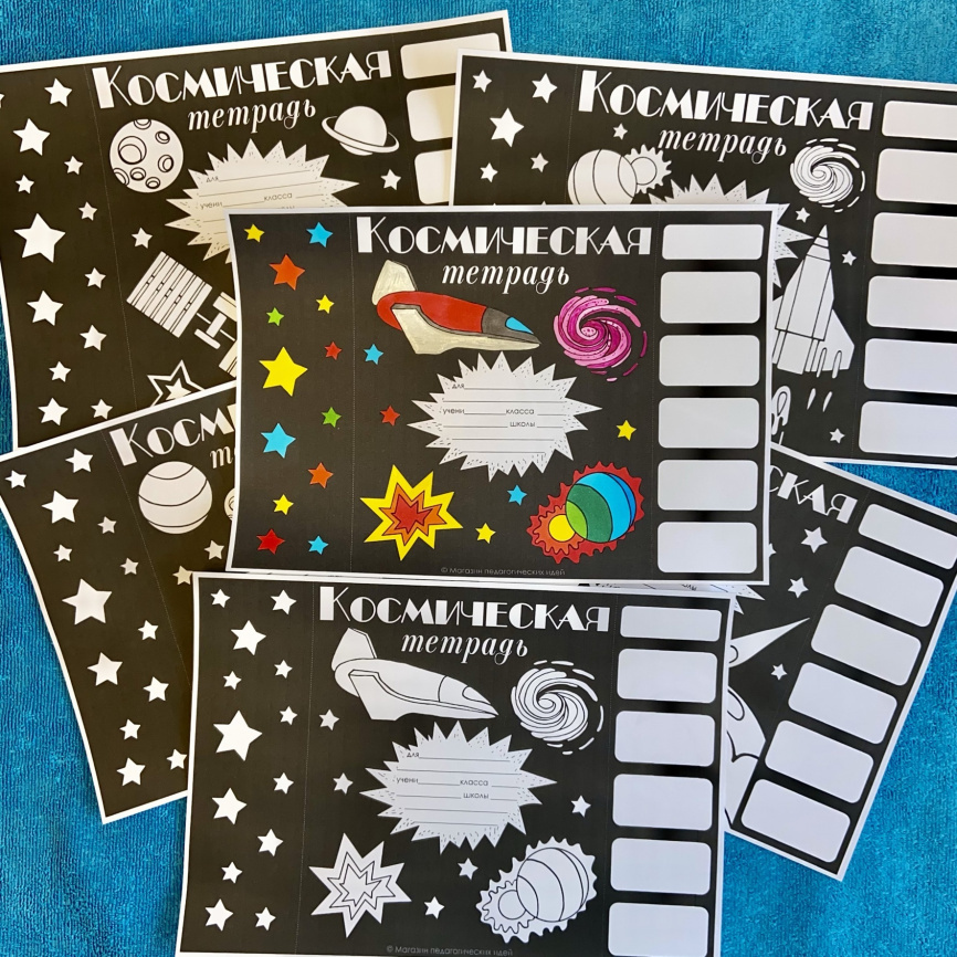- Обложки-раскраски для тетрадей "Космическая тетрадь"