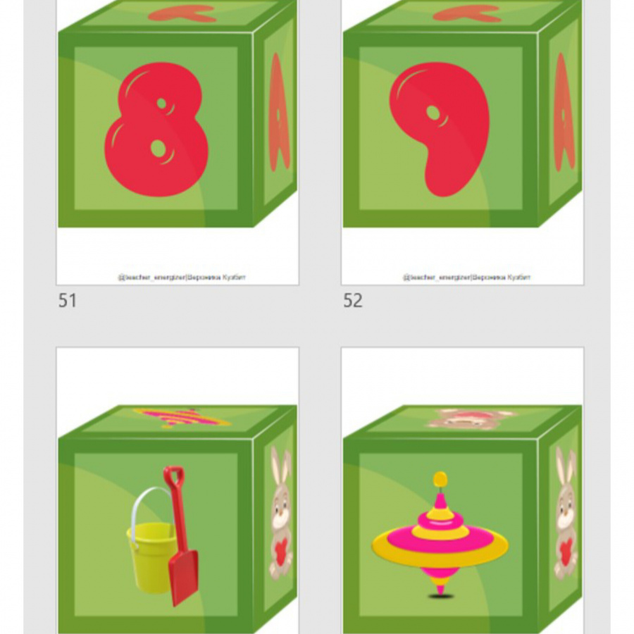 В наборе представлены кубики для цветной печати со следующим содержанием: