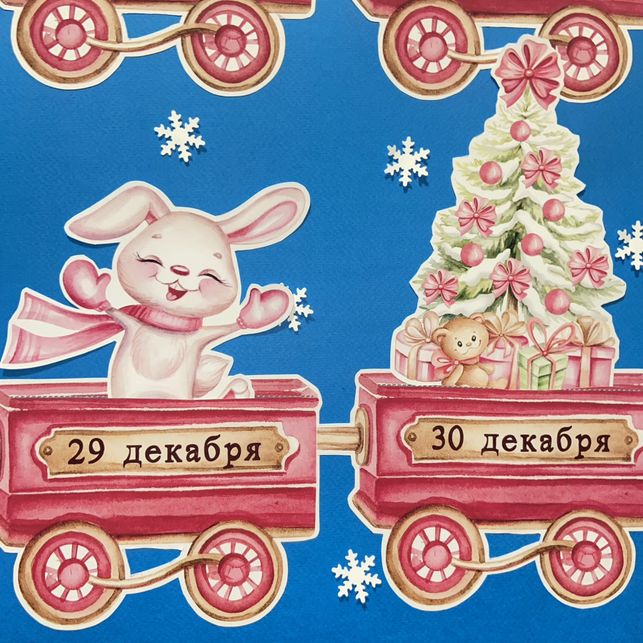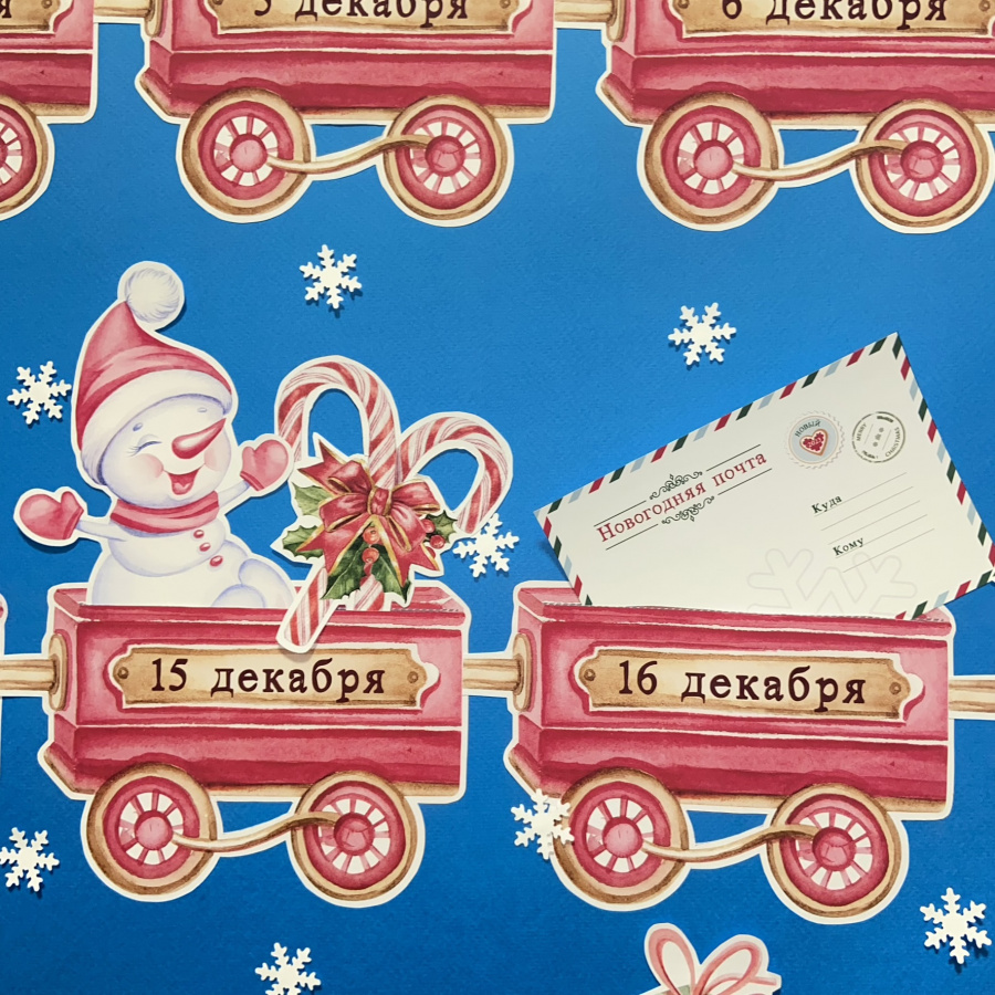 - Оформление Адвент-календаря (в вагоны карманы с датами декабря помещаем сначала карточки с заданиями, а после выполнения задания заменяем карточку на новогодний груз - подарки, сладости, новогодних персонажей).