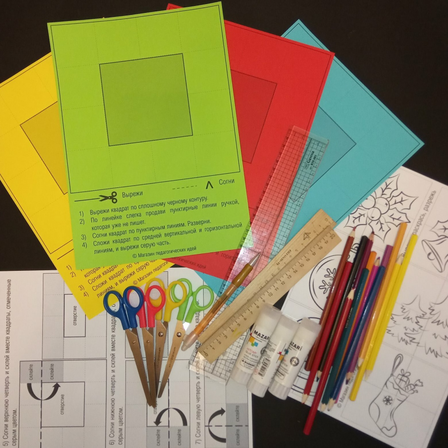 - цветные карандаши/фломастеры, линейки, ножницы, клей карандаш