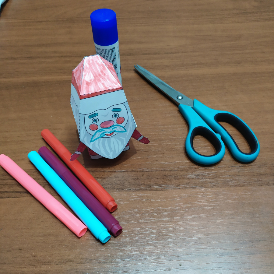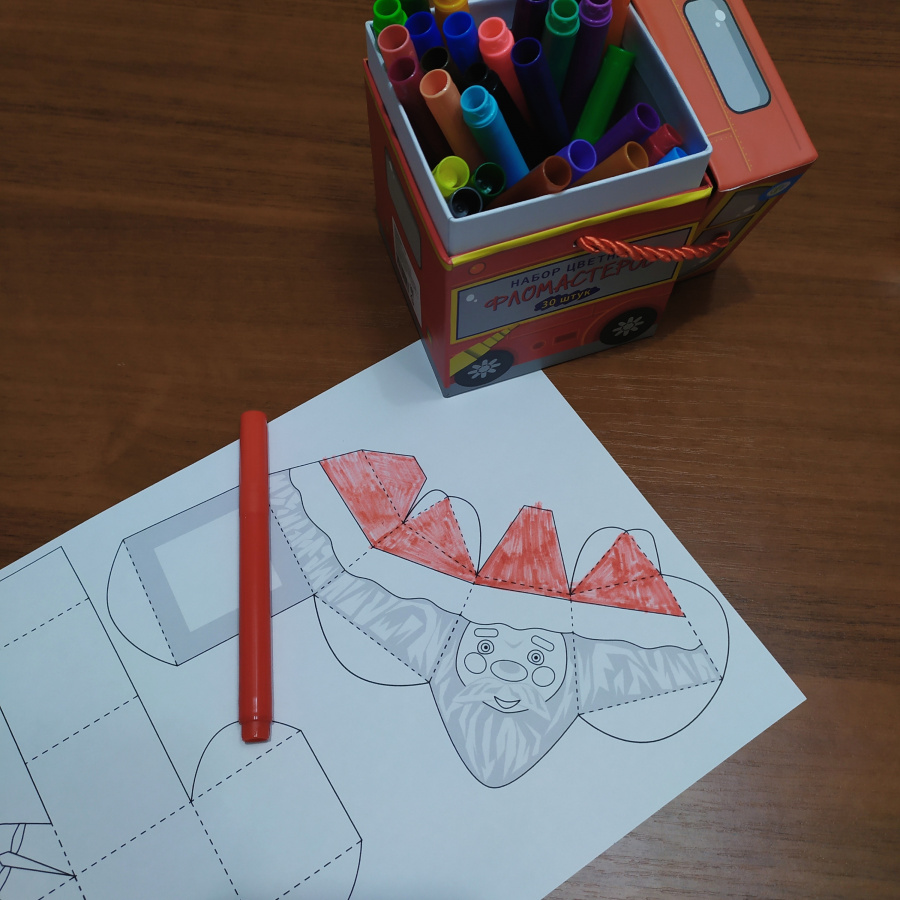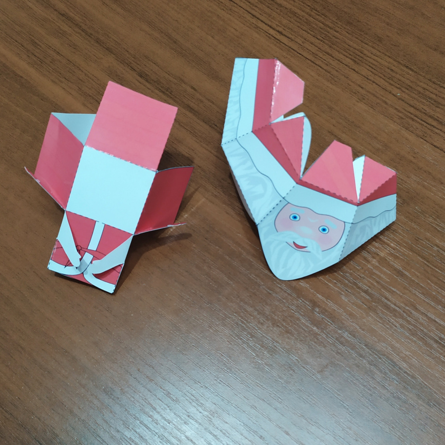 Шаблон подарочной мини-коробки «Дед Мороз» - многогранный продукт. Его можно раздать детям на уроке технологии и вместе соорудить поделку-коробку. Так каждый ученик уйдёт домой с сюрпризом для друга или кого-то из родных. А можно поставить под ёлку в качестве фигурки. И, наконец, с помощью таких Дедов Морозов Вы можете сделать приятный сюрприз для своих учеников перед Новым годом.