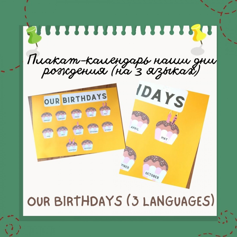Также, если плакат распечатывается на английском или французском, тему месяцев можно быстро закрыть, так как ученики быстро запоминают их, в том числе и написание. На уроках иностранного обсуждение «у кого сегодня/вчера/завтра день рождения» может служить разминкой в начале урока и практикой говорения.