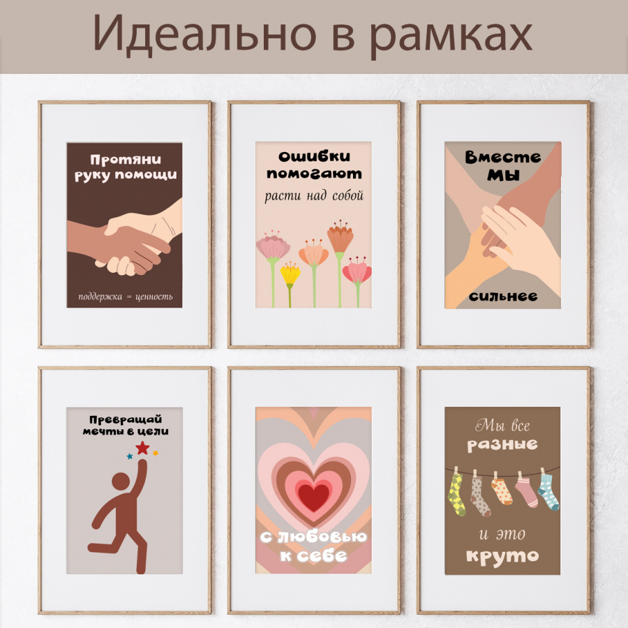Постеры можно использовать все сразу или только часть и менять их, создавая динамичное оформление, которое не приедается и продолжает притягивать взгляды учеников.