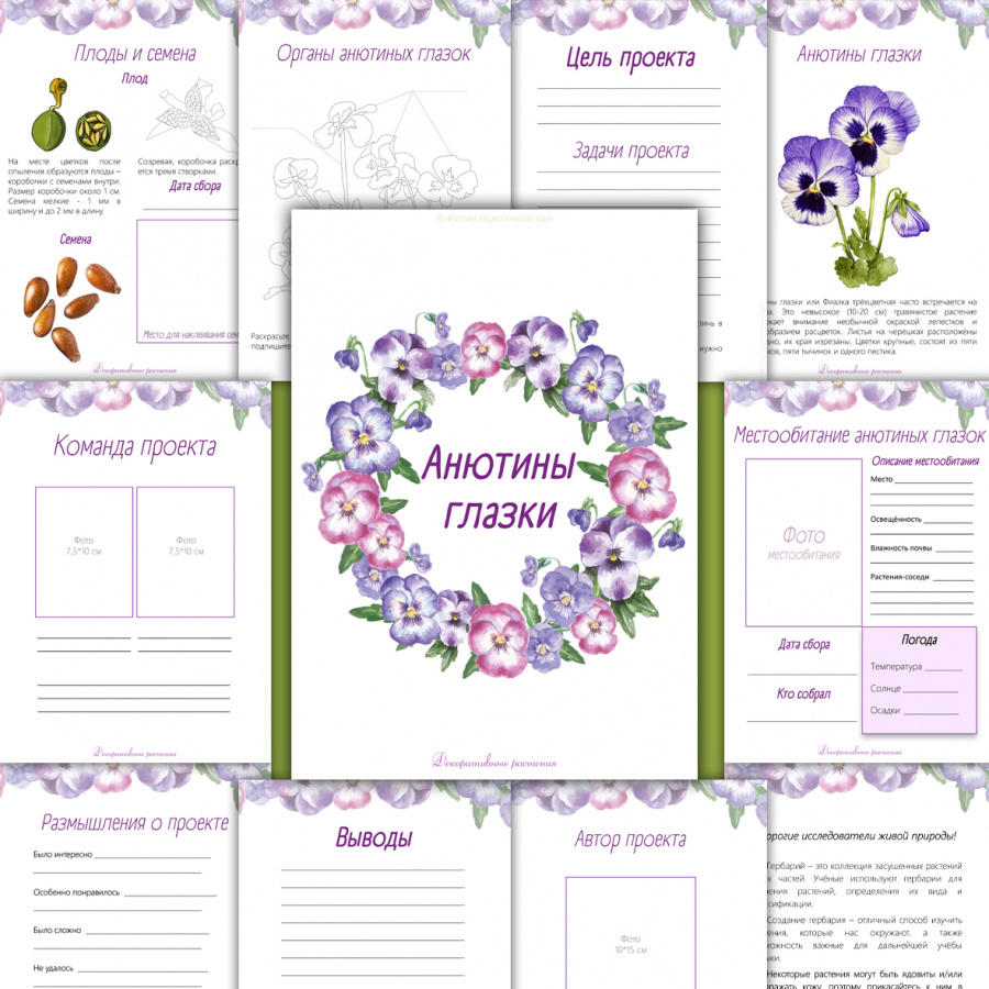 Вы можете использовать данный комплект материалов для организации индивидуальных или групповых проектов. Для этого распечатайте страницы, которые вам нужны, и раздайте их своим ученикам. Работа над проектом может вестись во время урока на школьном дворе, экскурсии во внеурочное время или в качестве задания на лето.