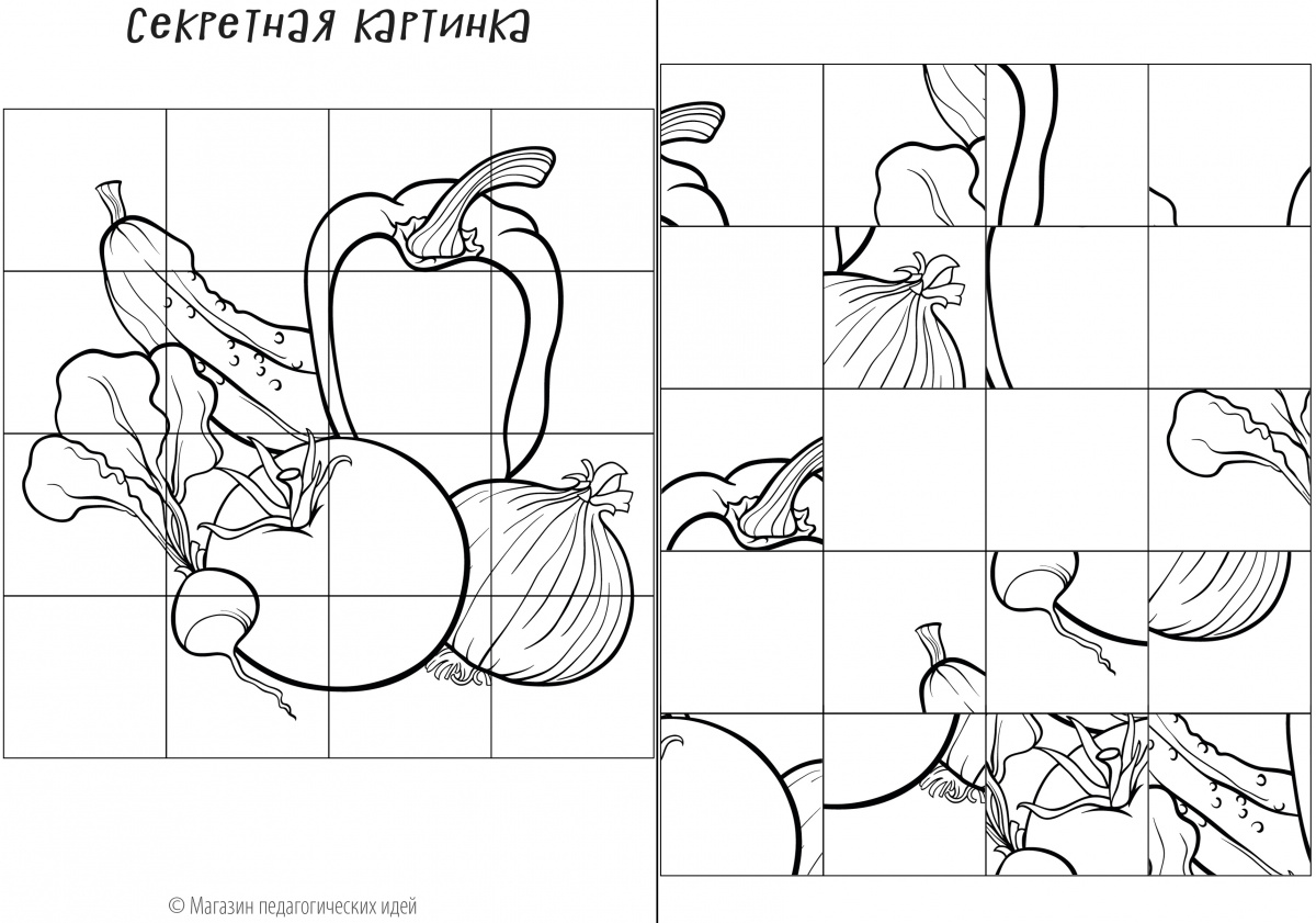 Секретные картинки - это задания, в результате выполнения которых Ваши ученики соберут картинки осенних овощей. Задание состоит из двух частей: в ячейках левой части - задачи, примеры, вопросы - все, что Вы решите в них разместить, а на карточках правой стороны - ответы. Вначале ребенок получает левую часть страницы, в ячейки которой записывает ответы, а после этого - карточки правой части, и совмещает ответы с заданиями, собирая из фрагментов целую картинку. В каждом варианте четыре лишние карточки, на которые нужно разместить ответы с типичными ошибками.