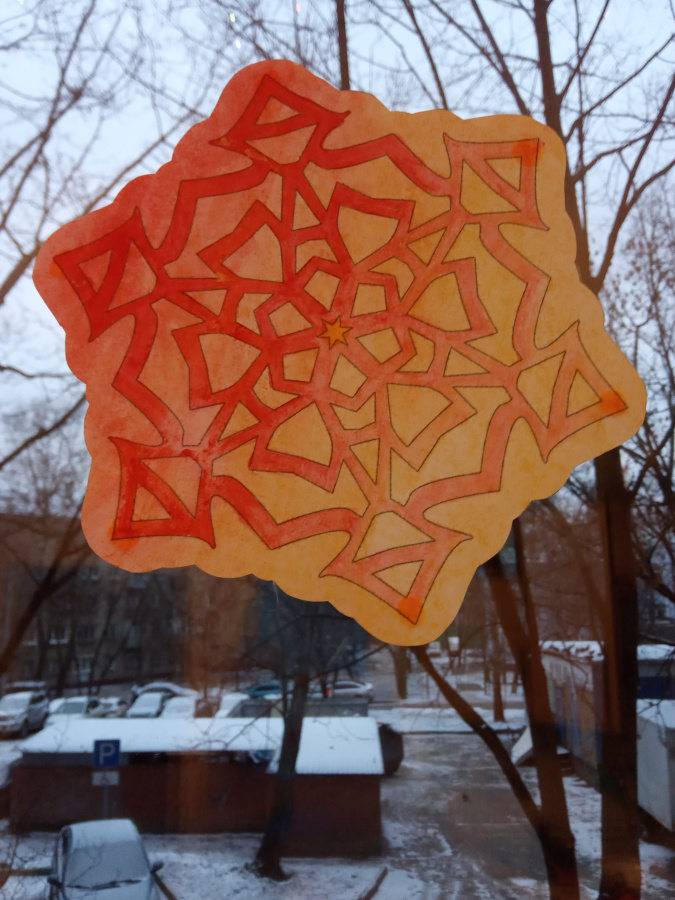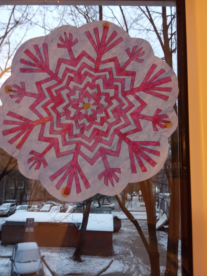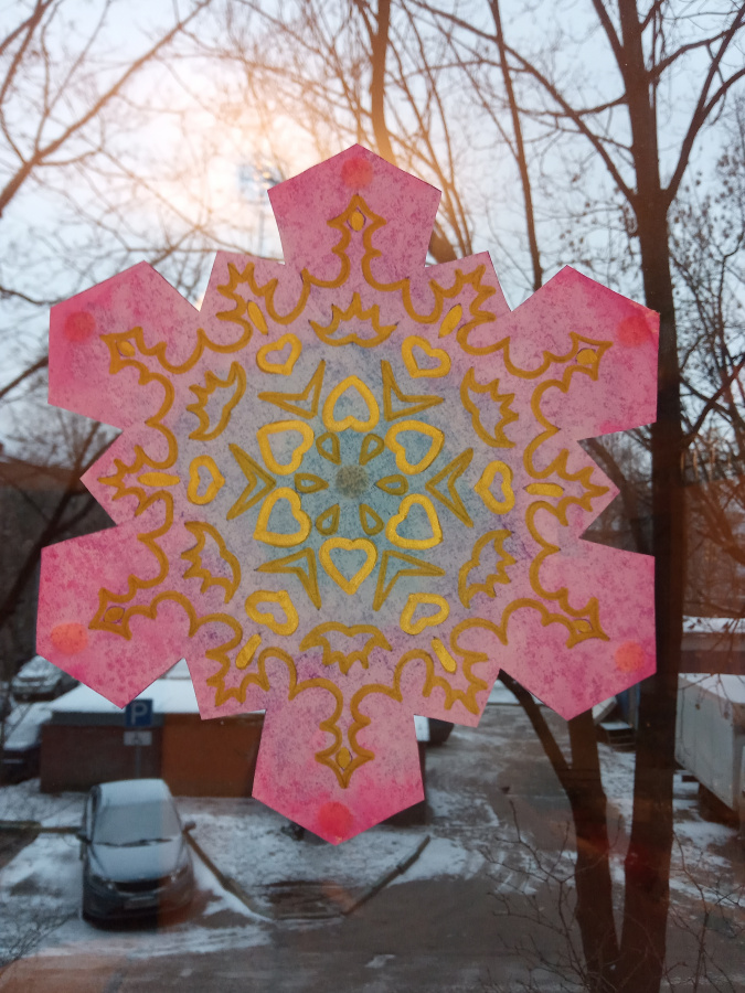 Как долго декор продержится на окне? Несколько месяцев точно может! Только нужно учитывать, что весной и летом, на ярком свету фломастеры будут выгорать. Свободные края бумаги, даже промасленной через несколько недель станут скручиваться, но их можно подклеивать по мере необходимости.