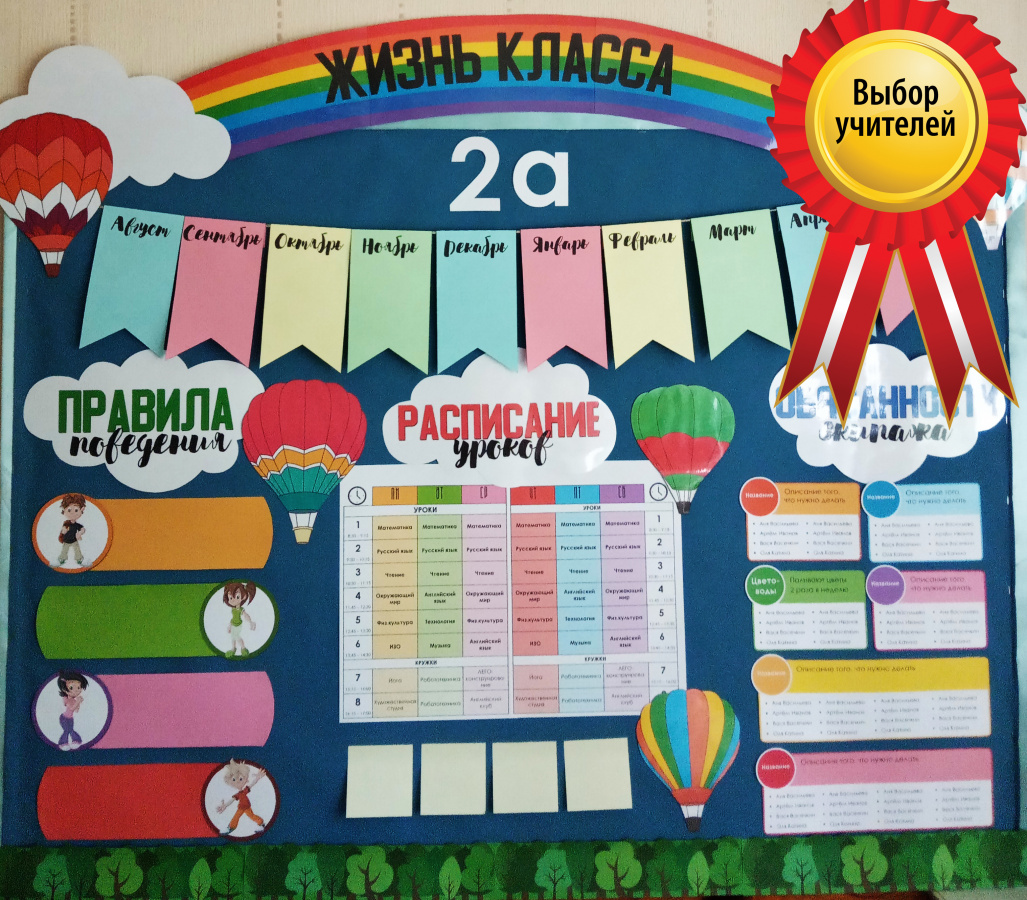 В основе лежит идея, что класс вместе с учителем отправляется в полет за знаниями на воздушном шаре, это путешествие длится весь учебный год. Тема прослеживается в оформлении кабинета (декор двери, мотивирующий декор на стену, уголок класса и предметная доска, дисплей в виде воздушного шара), а так же в элементах поддерживающих культуру класса, направленную на познание мира и себя в нем, обучение личным границам и их уважению - в этом помогут билет на воздушный шар, паспорт ученика (тетрадь с наклейками для поощрения желательного поведения, 3D-альбом для рефлексии в конце учебного года).