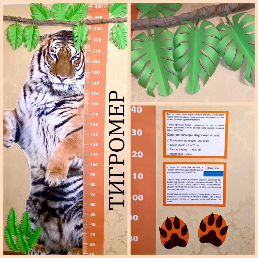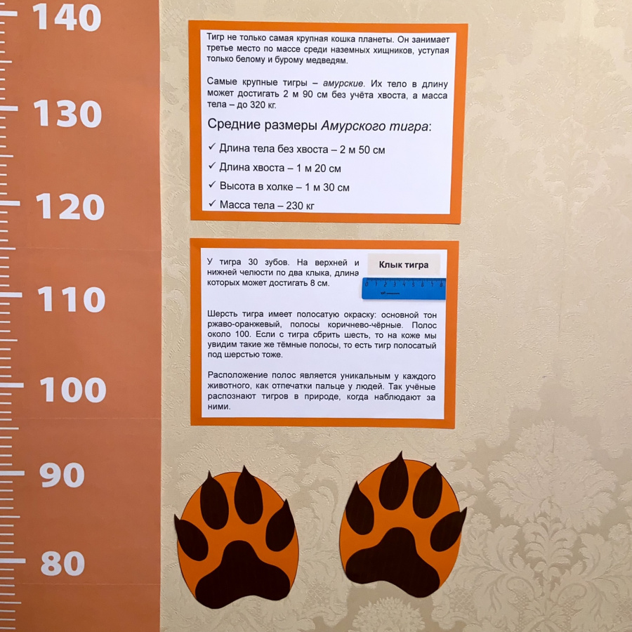Ростомер с тигром, стоящим на задних лапах - реальный размер: можно сравнить свой рост с длиной тела амурского тигра, определить, на сколько нужно еще вырасти, чтобы достать ему до передней лапы, до плеча, до нижней челюсти.