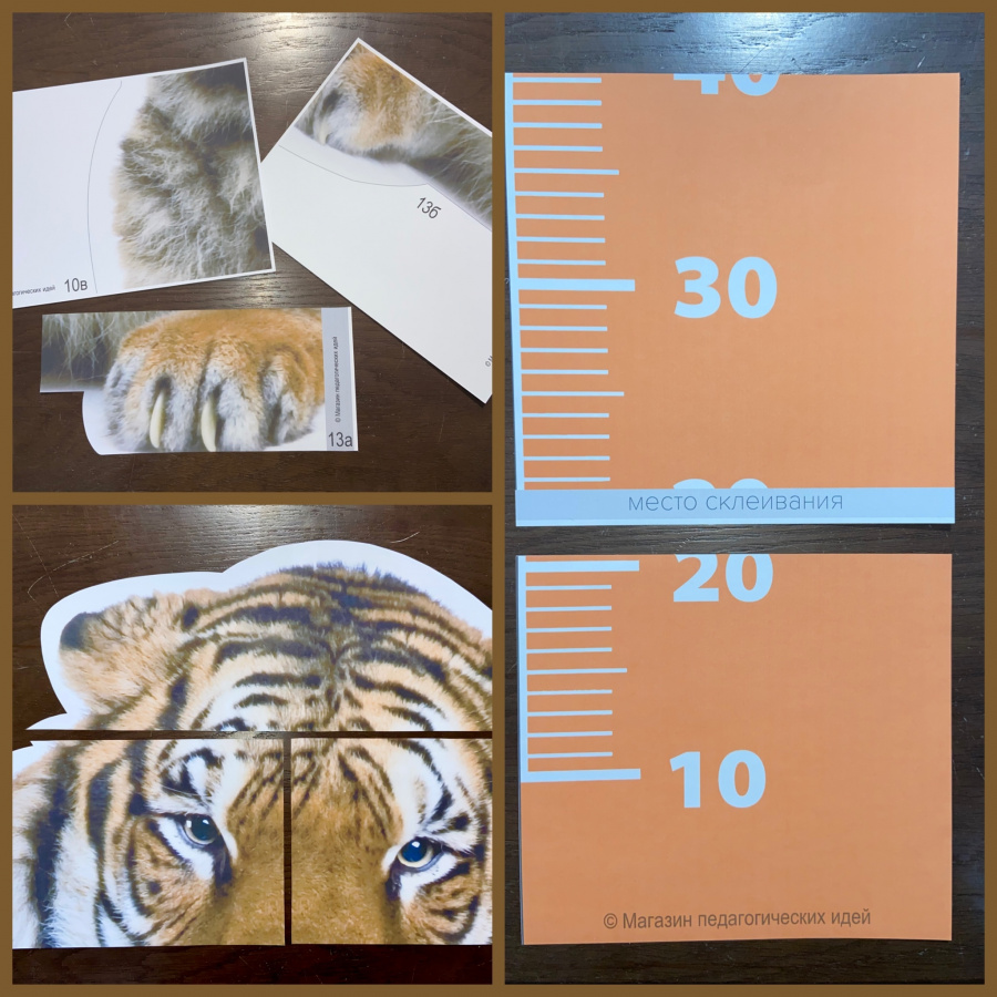 Несмотря на то, что ростомер 2,5 м, а тигр 2,3 м в высоту, вся печать на листах А4, монтажная схема прилагается. Сборка доступна без специальных навыков. Качество иллюстрации соответствует крупному декору для оформления пространств вне класса - коридоров и рекреаций.