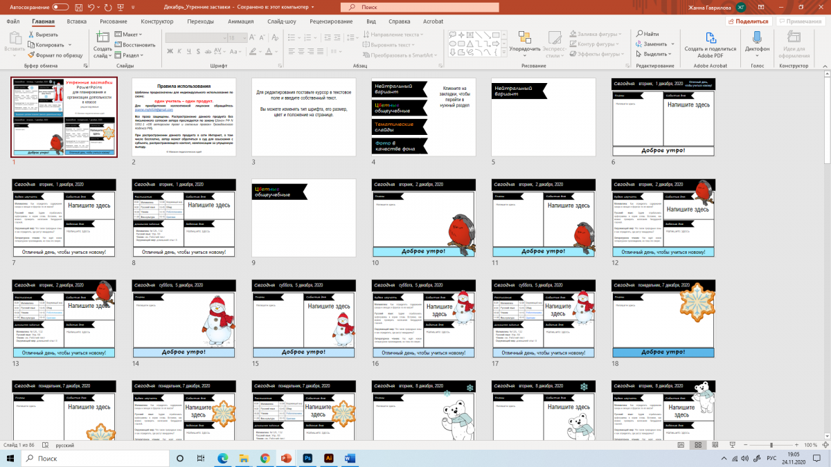 Утренние заставки для планирования и организации деятельности в классе - это продукт в электронном виде (файл PowerPoint). Скачать можно в личном кабинете - сразу после оплаты и в любое удобное время.