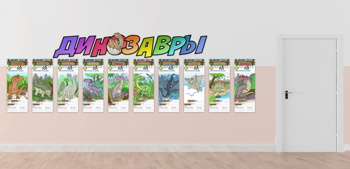 Готовые постеры можно повесить на стену в классе, коридоре или рекреации (с помощью офисного пластилина). Дополните галерею надписью "ДИНОЗАВРЫ" (есть варианты для цветной и черно-белой печати).