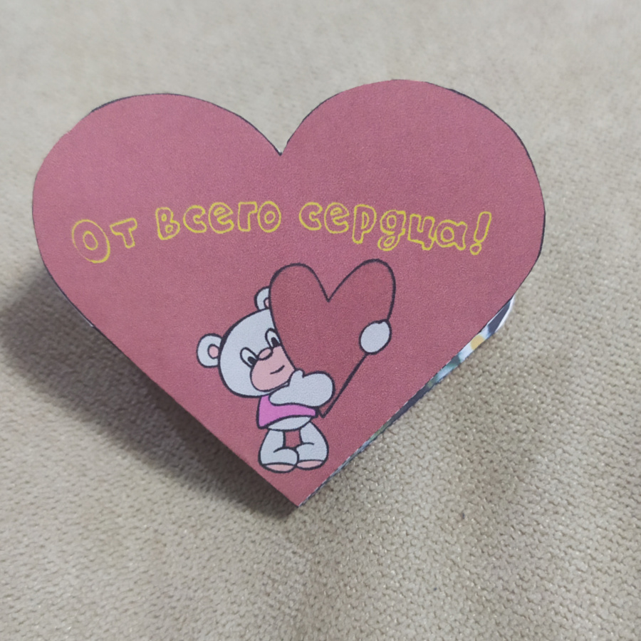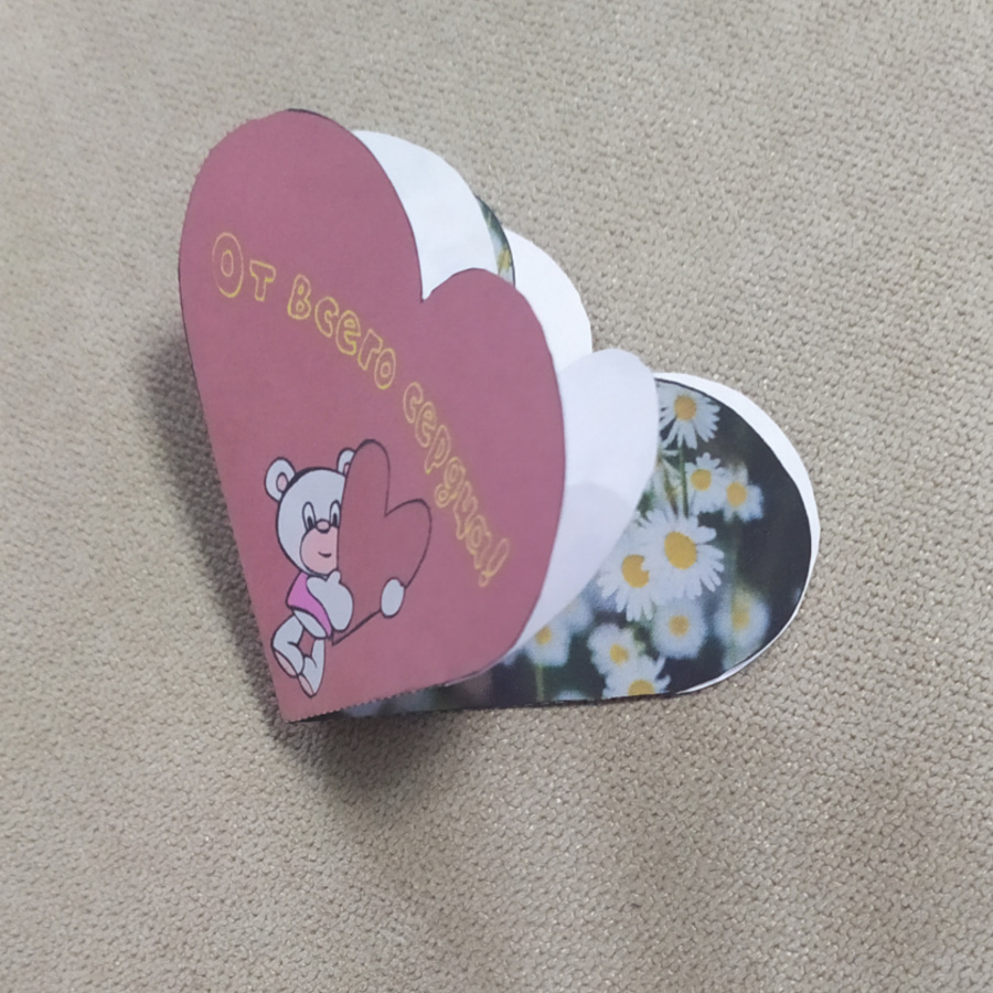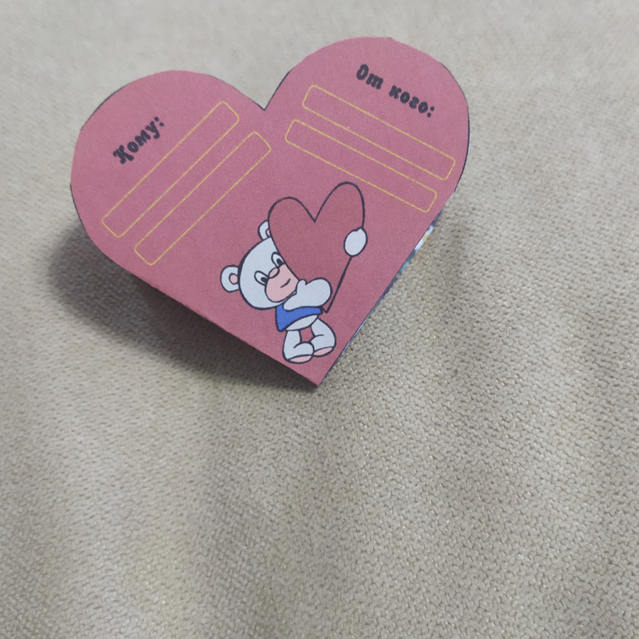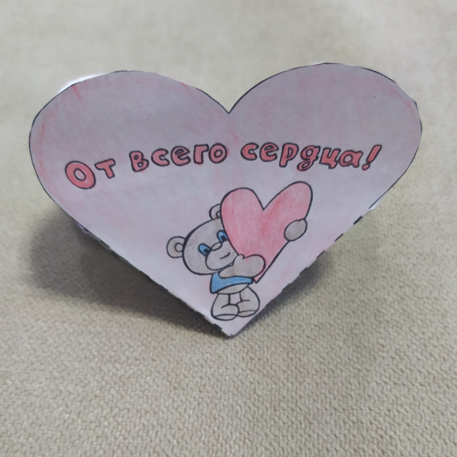 Эта валентинка – отличный вариант поделки на уроке технологии. Она отлично подойдёт для подарка другу в День влюблённых, а так же в другие праздничные дни. Например, маме к 8 марта. Это возможно потому, что на обложке валентинки нет упоминания о Дне Святого Валентина, благодаря чему она становится универсальной.