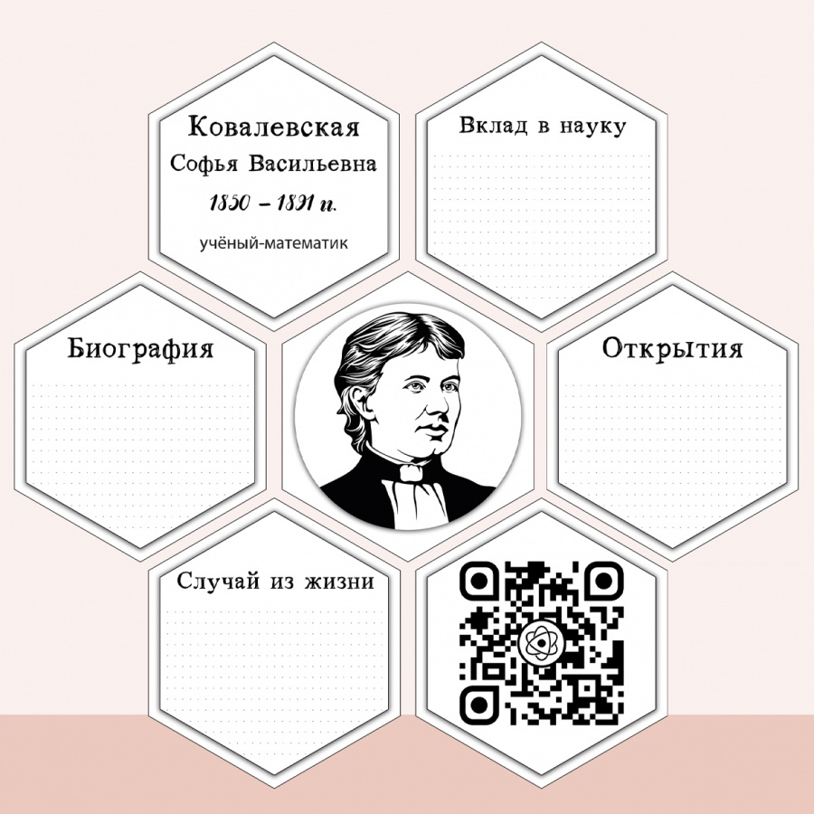 Российских ученых знает весь мир... но знают ли о них наши ученики? Это просветительских проект, в котором могут принять участие ребята из 7-10 классов. Они изучат статьи о российских ученых и заполнят информацию о них на шестиугольниках. И будут делать это индивидуально, в парах или группах.
