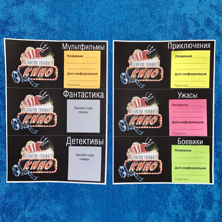 - Карточки для наклеивания блоков стикеров по жанрам/вариантам ответов