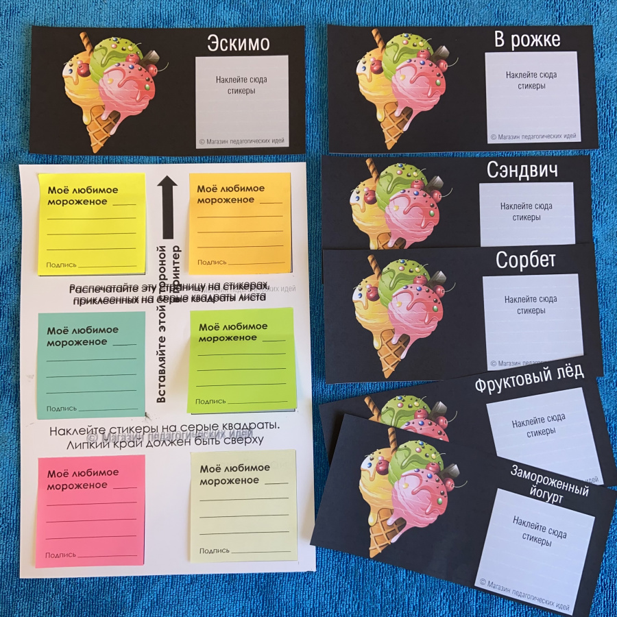 - Карточки для наклеивания блоков стикеров по жанрам/вариантам ответов