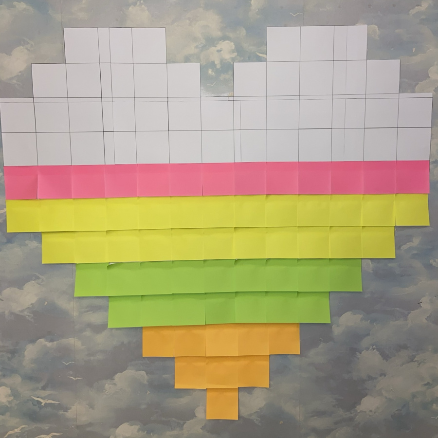 Данные материалы предназначены ДЛЯ КОРИДОРА, РЕКРЕАЦИИ, ХОЛЛА: высота 1 м, ширина 2,5 м. Одно сердце рассчитано на наклеивание 104 стикеров, есть разметка. Стикеры 7,5*7,5 см (7,6*7,6 тоже подходят).