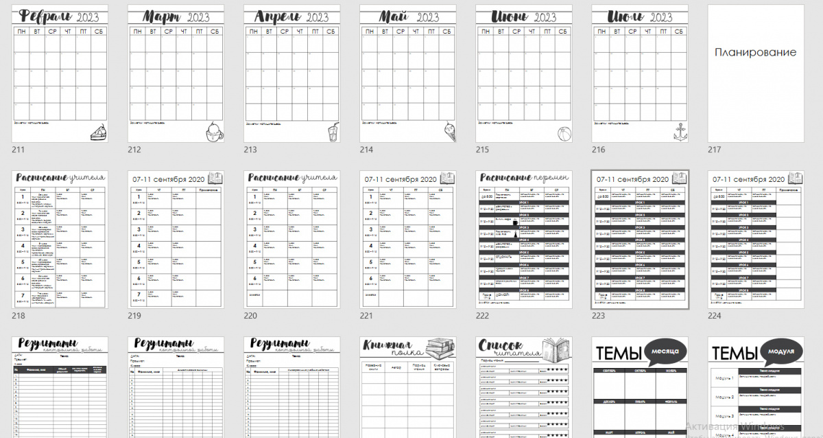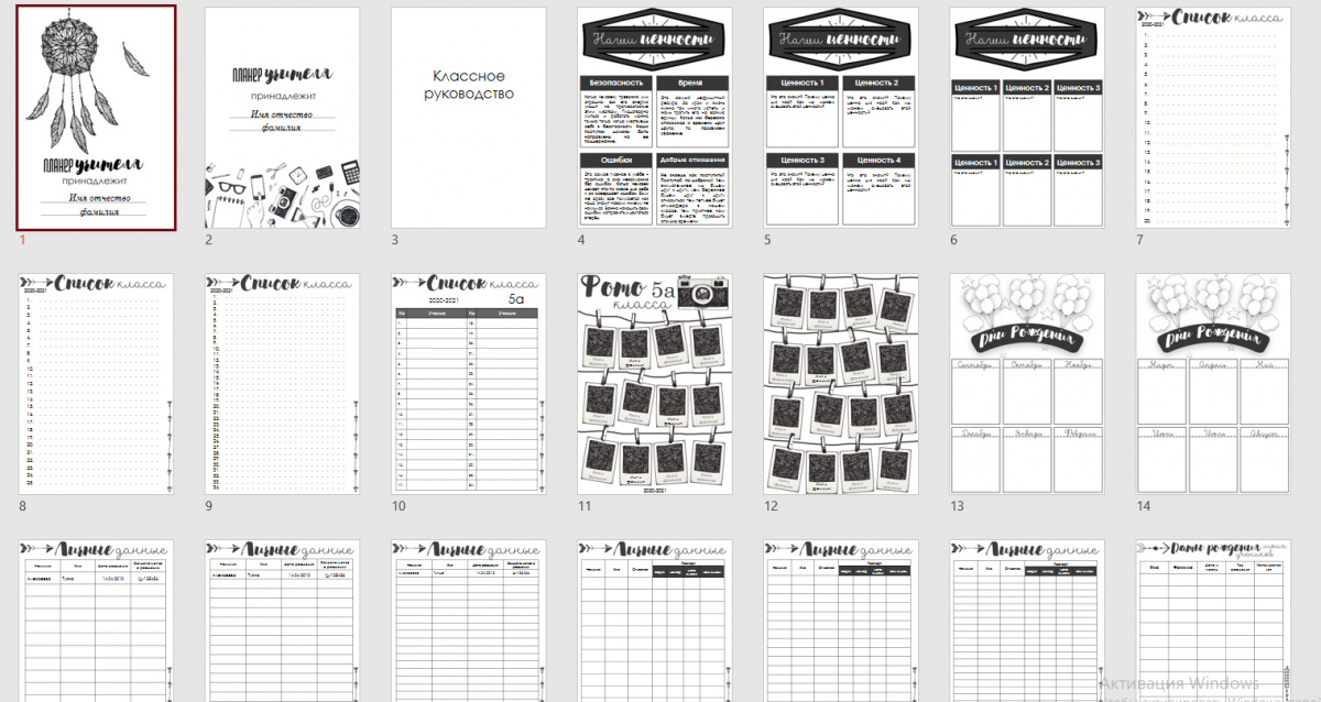 Планер состоит из двух частей: классное руководство и планирование учителя-предметника. Он универсальный - подходит и для учителей среднего и старшего звена, и для учителей начальной школы - 1-11 классы. Я старалась сделать его удобным, трансформируемым, таким, чтобы каждый мог собрать то, что нужно именно ему.