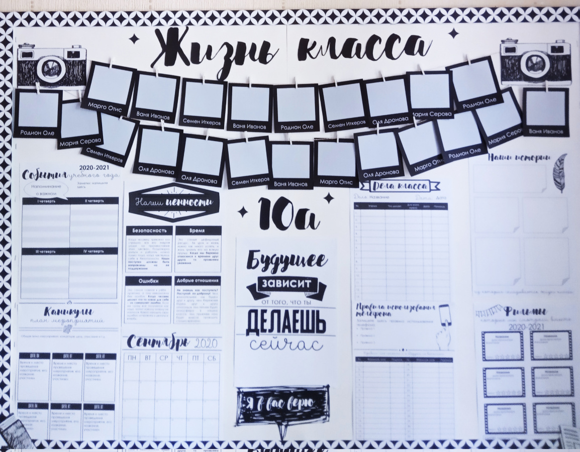 - места для размещения фотографий класса,