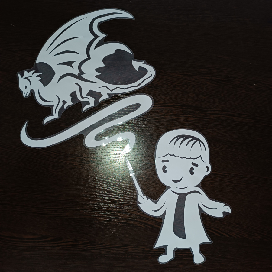 Сюжет общей композиции таков: обитатели Школы магии и волшебства вышли на школьный двор в один из зимних дней. Два одноклассника прогуливаются по заснеженному двору, рядом на метле летает их друг. С другой стороны от ребят юный волшебник разучивает новое заклинание. И вот уже из палочки вылетает большой белый дракон. В школе магии такое заклинание называют Патронусом.