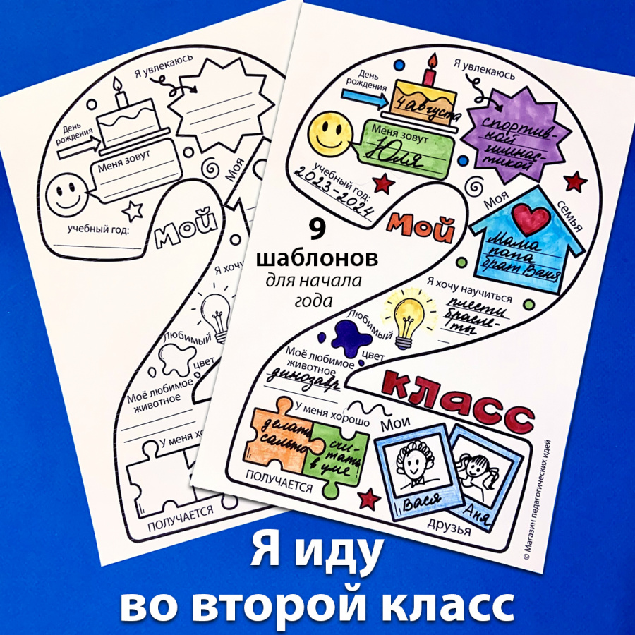 Я иду во второй класс. Шаблоны для рассказа о себе и знакомства с одноклассниками - это продукт в электронном виде (файл PDF). Скачать можно в личном кабинете - сразу после оплаты или в любое удобное время.