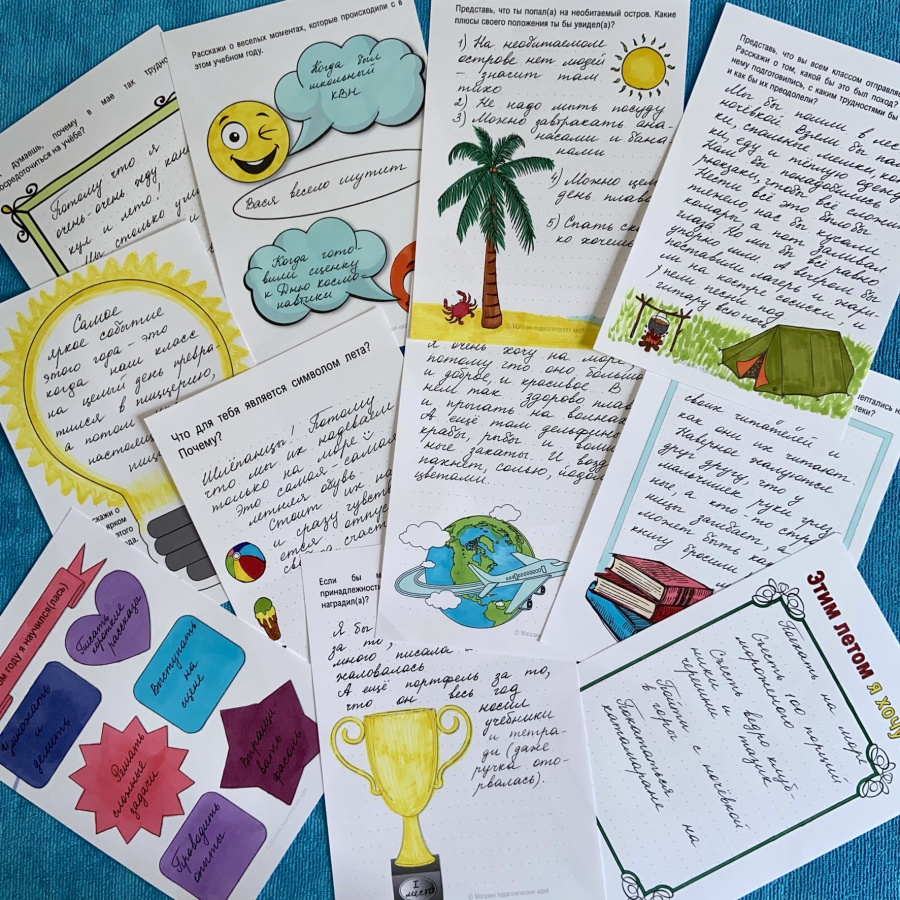 В заданиях дня мая часть заданий направлена на размышления о завершающемся учебном годе, составление планов на лето, воспоминаний о прошлом лете, чтобы органично завершить учебный год. есть и тематические задания, связанные с памятными датами, в том числе и приуроченные к Дню Победы.